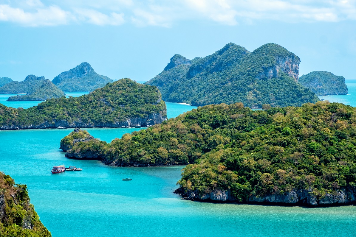 Mu Koh Angthong National Marine Park is an archipelago in the Gulf of Siam situated North-West of Koh Samui covering an area of 102 Km consisting of 42 islands.